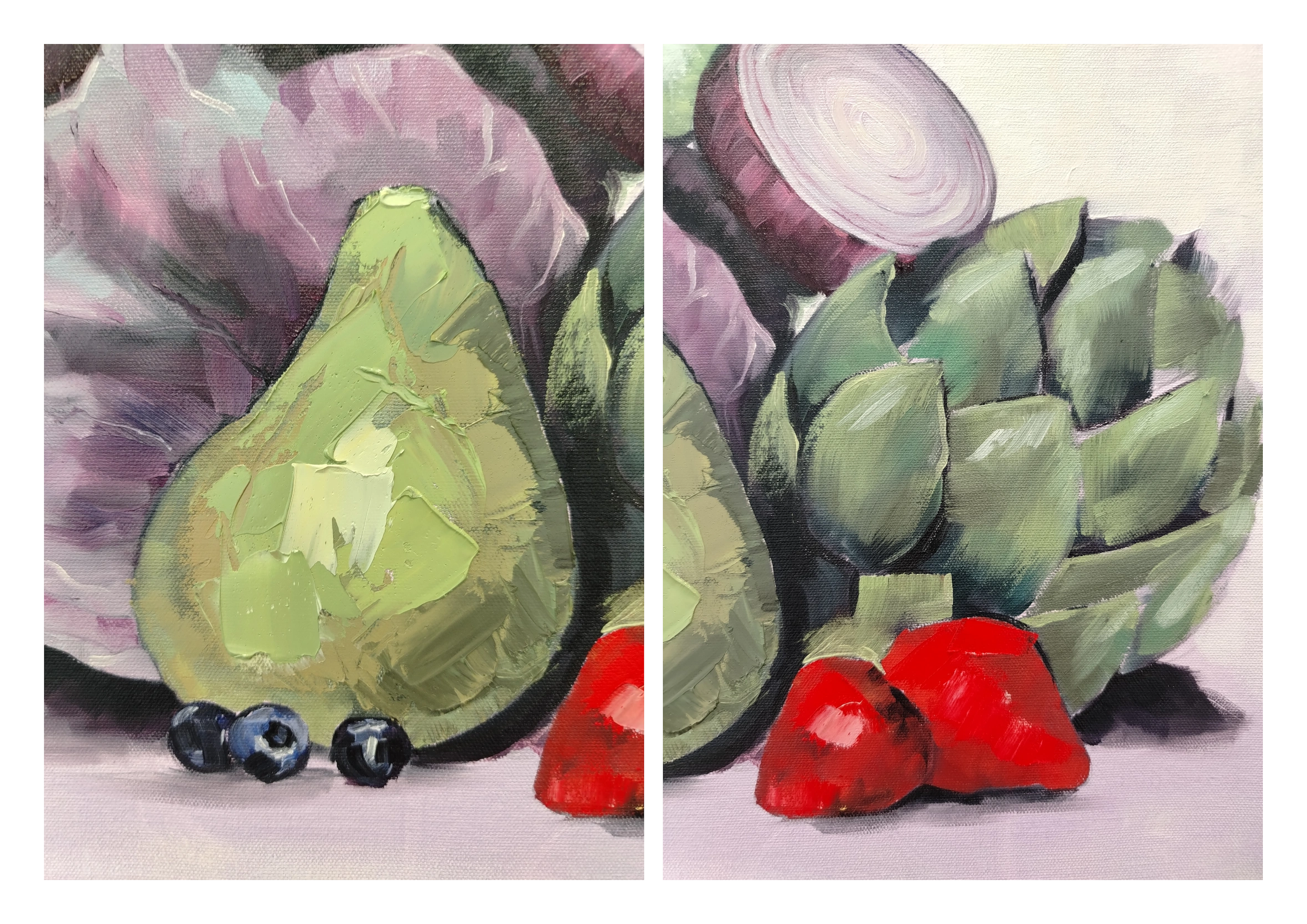 I chose to highlight the details first, as this was only my second oil painting, and I was experimenting with brushwork and color throughout. The details shown earlier were the final additions, where I really felt I started to understand the medium.