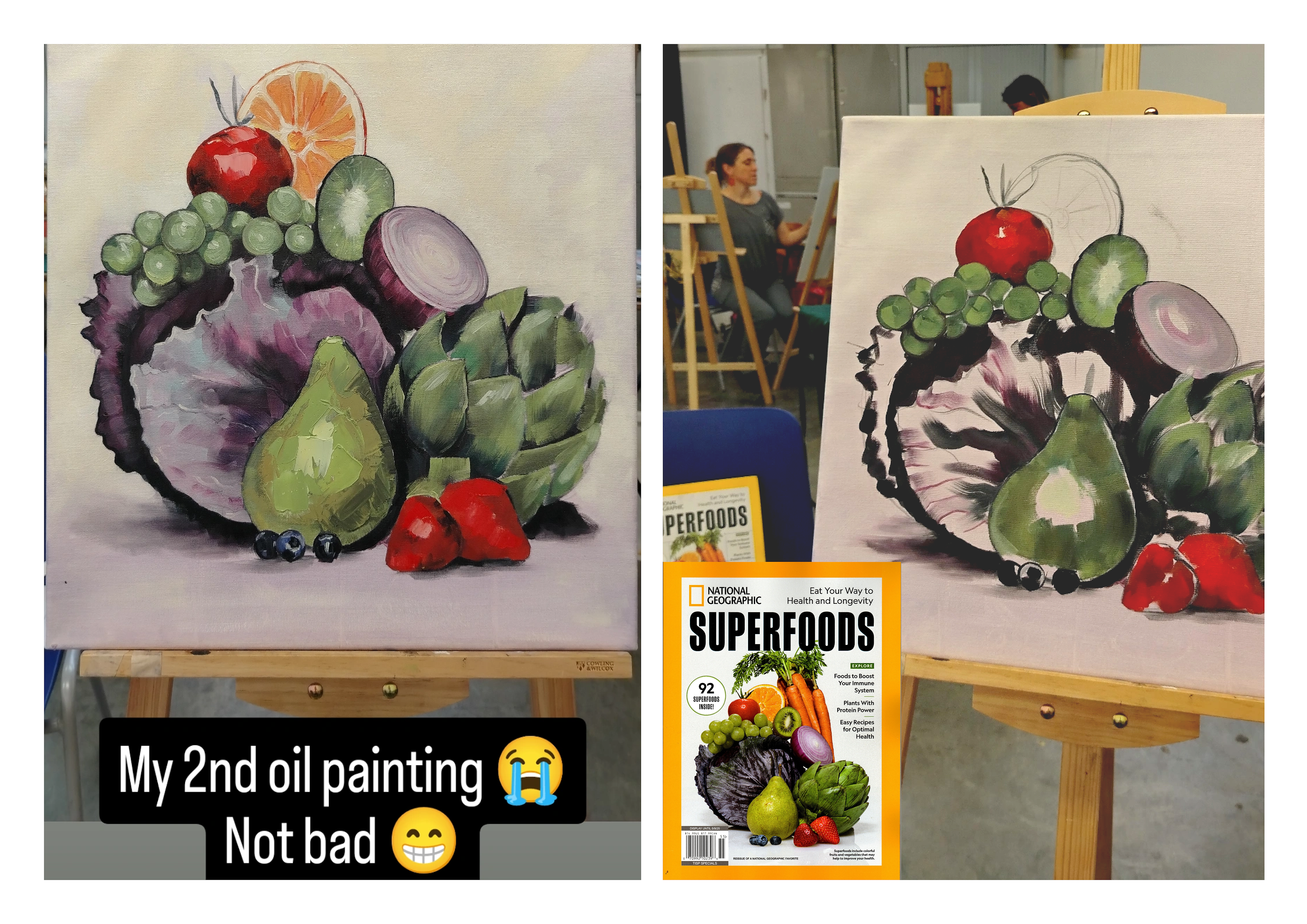 Although I haven’t had the space to continue painting since, I feel these initial experiments were successful. This process reflects the beginning developments of technical skills. I hope to soon explore the medium further.