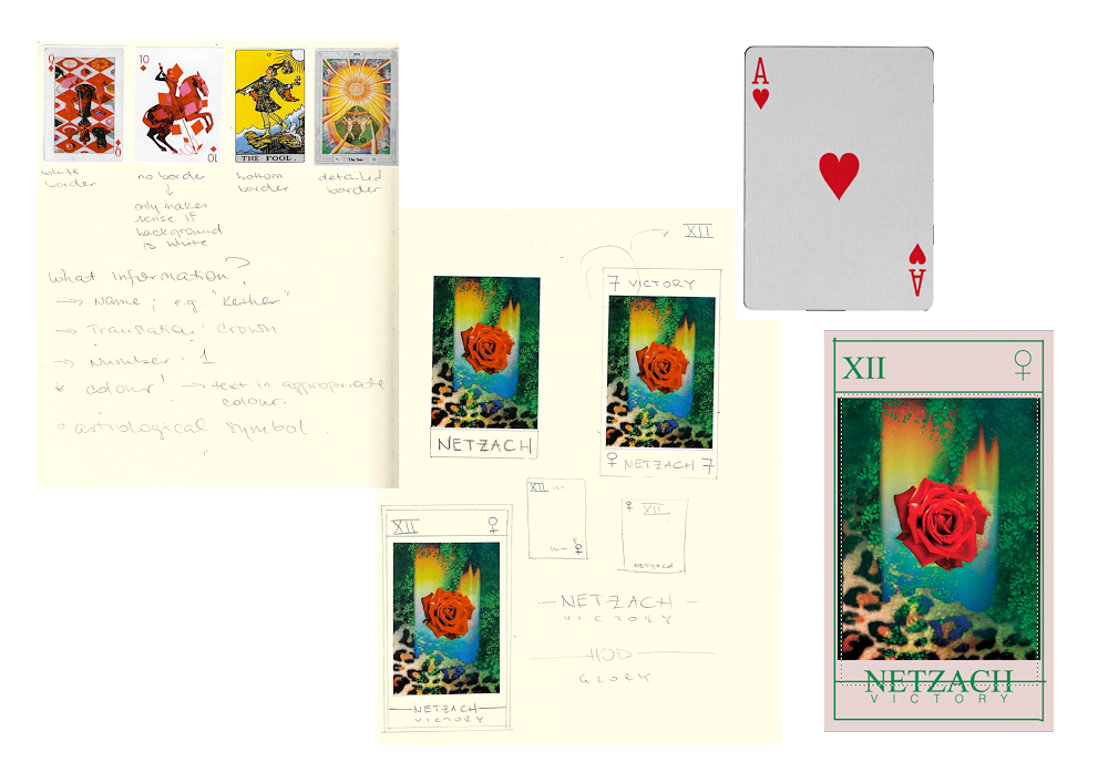 - determining which elements were essential to display on each card, finally settling on: the name, number, translation, and the astrological symbol of its planetary association
