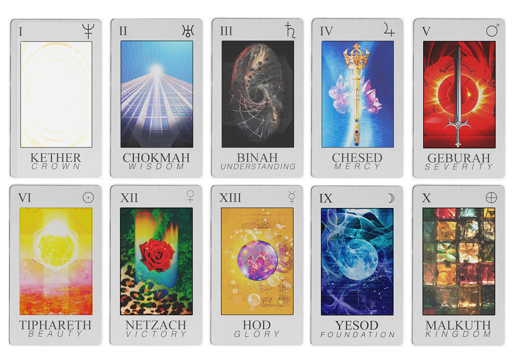 The Sephiroth are grand archetypes that escape language—escape all boxes, really—very similar to the tarot, very related as well (but I really don't have the space to get into it here!) This is a wonderful example of where visual art excels. In this series, each card attempts to give form to something fundamentally without form (too grand to be captured,) to make the intangible visible, at least a little. A picture is worth infinite words.
