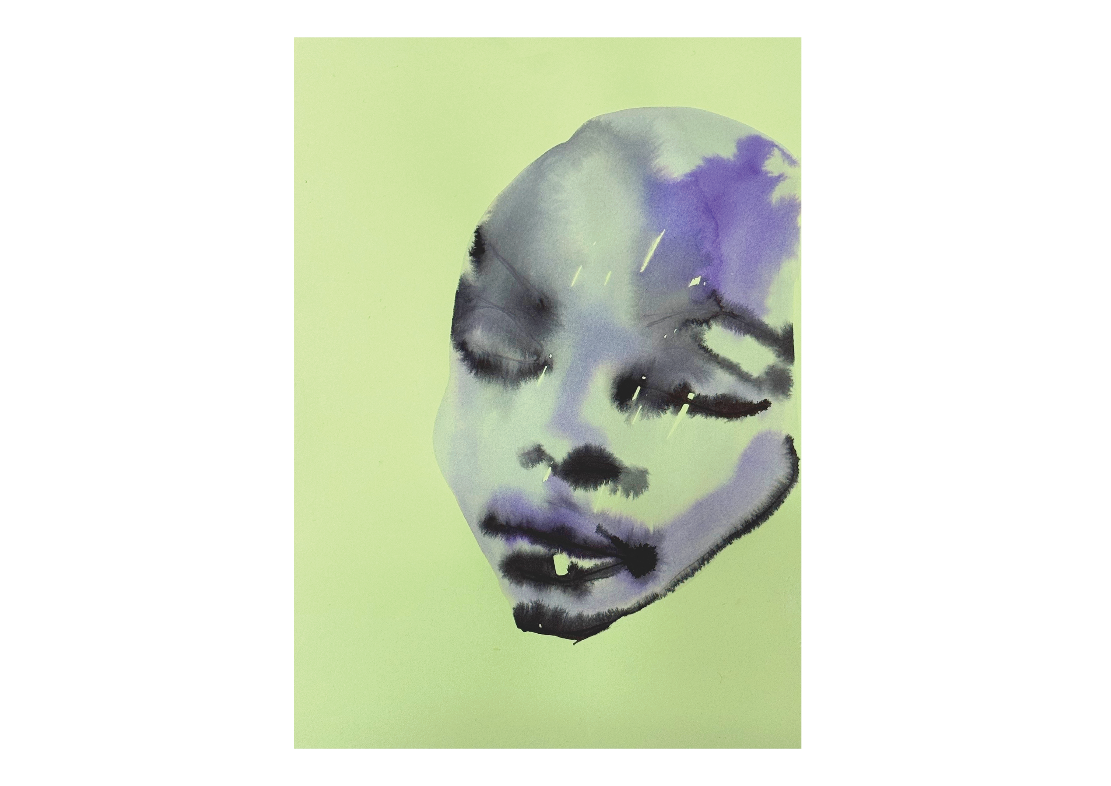 A loose ink portrait study made after the work of Marlene Dumas, exploring wet ink, immediacy, and minimal expressive mark-making.